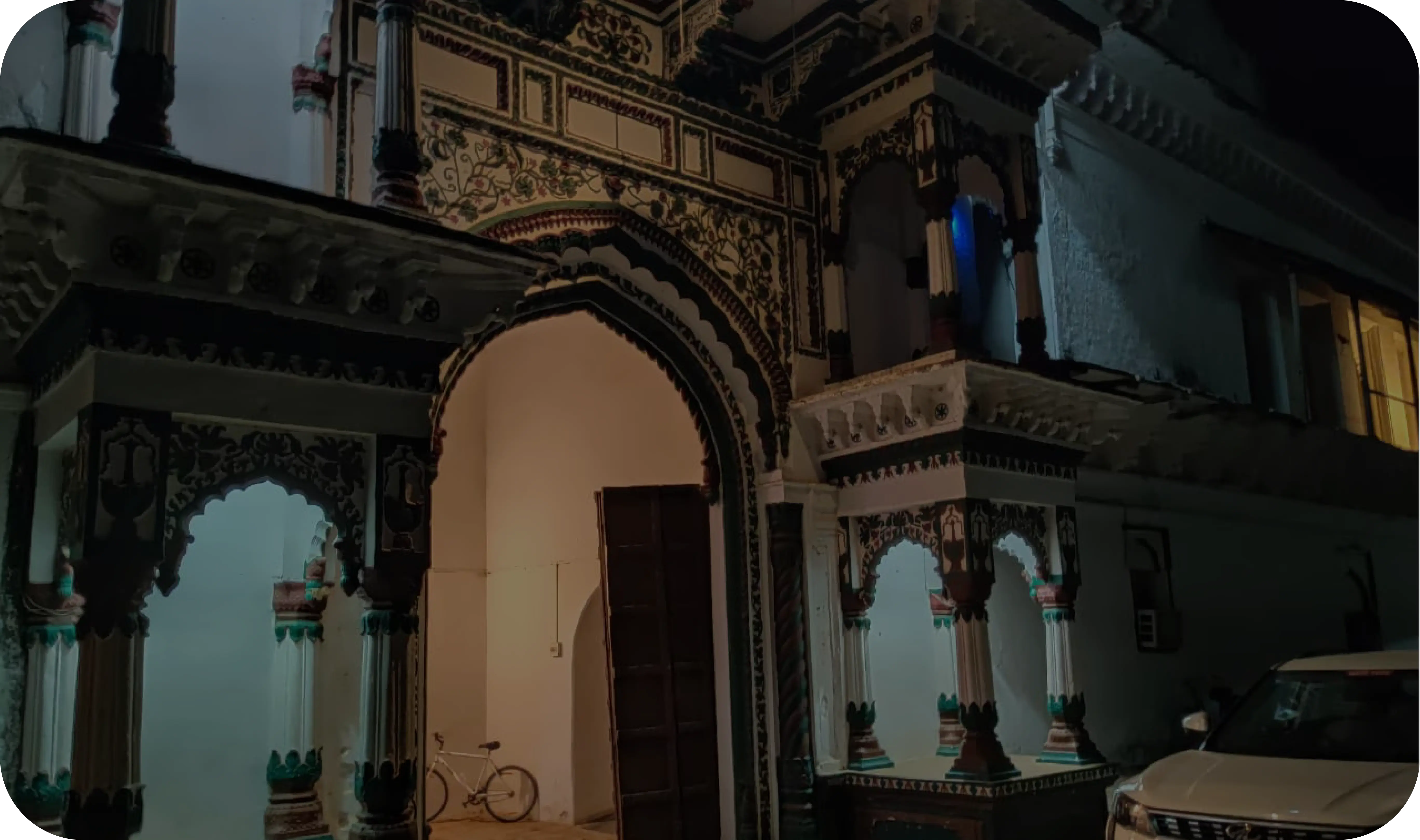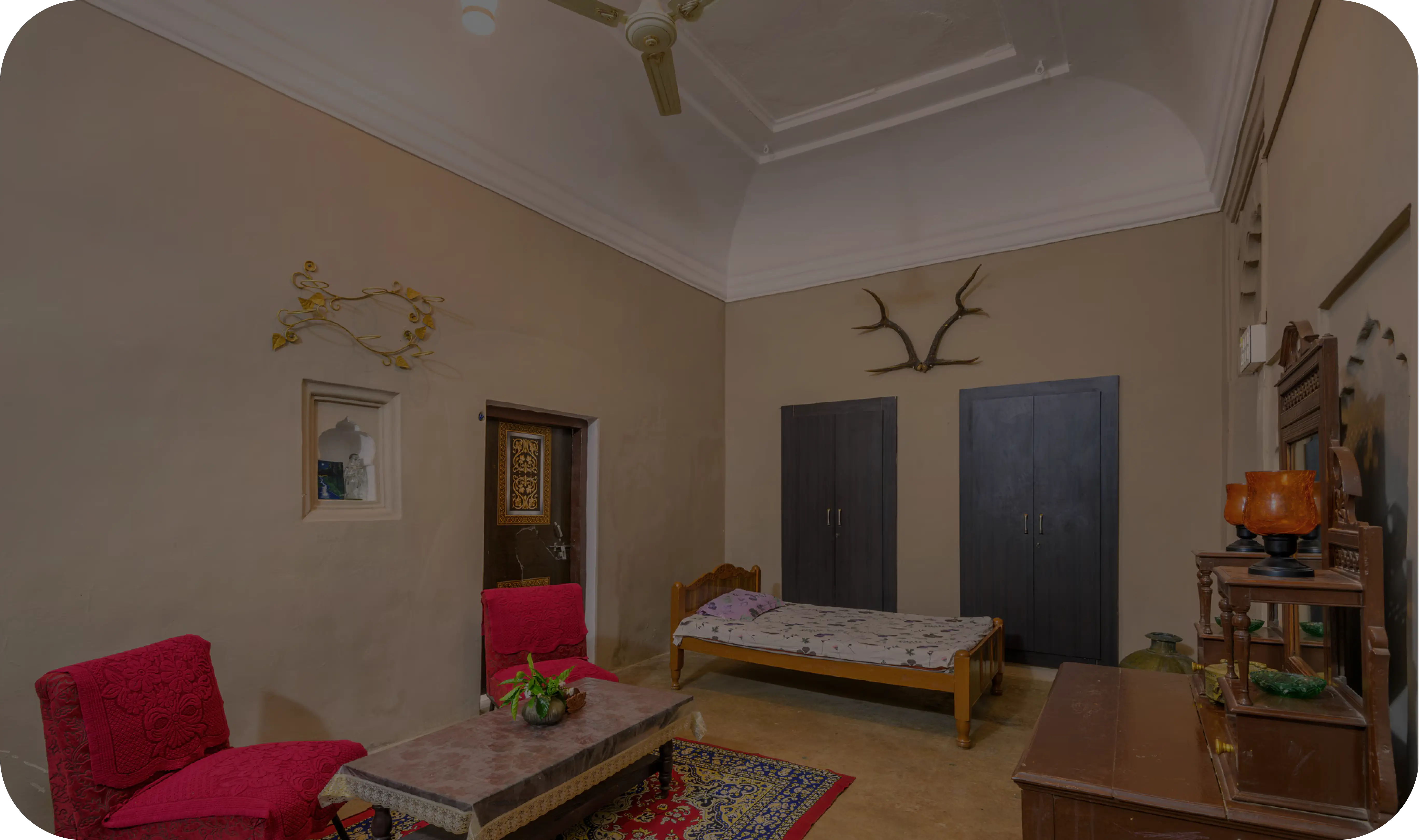 Carved wooden panels frame ancient memories. Silk drapes tell stories of maharajas who once walked these floors.